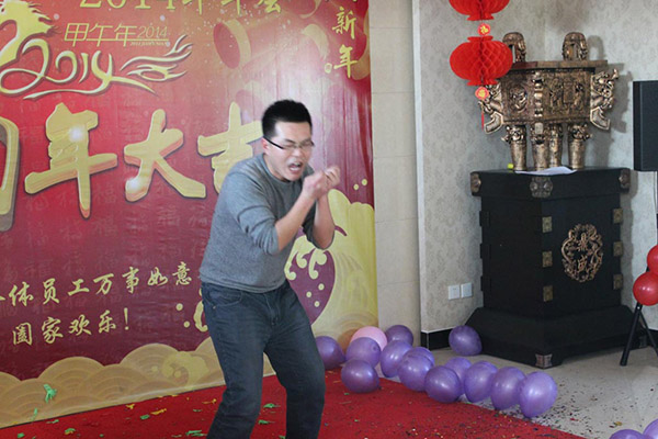 在個人游戲環(huán)節(jié),大家踴躍拼搏,所展現(xiàn)的實力出乎大家的意料,搶凳子環(huán)節(jié),身體并不是最壯實的李曉偉贏得了第一;而在最為精彩的鐵人三項環(huán)節(jié),每一個參賽選手都要吃完一根黃瓜,喝完一瓶啤酒,吹破一個氣球,選手們滑稽的狀態(tài)逗得大家歡笑不斷,最后王興勝以領(lǐng)先第二第三名近1分鐘的超大優(yōu)勢勇奪冠軍。在比賽過后,為每一位參賽的選手頒發(fā)了獎品,也為各個游戲中勝出的團(tuán)隊依次頒發(fā)了獎品。