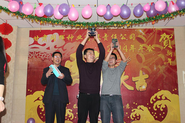 隨著悠揚(yáng)的音樂響起,同輝女員工帶來的手語舞蹈《感恩的心》,拉開了文藝表演的序幕。身著紅色連衣裙的美女們一上場,就贏得了熱烈的掌聲。她們的每一個動作,口中輕唱的每一句歌詞,都在這新年的氛圍中滌蕩著所有人的心靈!案卸鞯男,感謝命運(yùn),花開花落我依然會珍惜!蓖x種業(yè)做為創(chuàng)業(yè)之初的新企業(yè),大家攜手共同度過了辛苦、充實的2013年,懷著一顆感恩的心,我們深深感謝每一個伙伴,沒有大家的支持,就沒有同輝種業(yè)今天取得的成績。