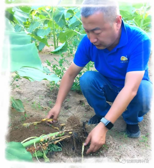 公司副總金濤在查看對照品種列當寄生情況