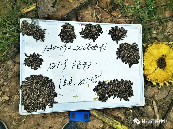 同輝33特征特性:晚熟品種,生育期113天。株高180—200厘米,盤徑32厘米左右,花盤傾斜度2-4級,結(jié)實率85%左右,葉色深綠,開花期長,花盤微凸。籽粒黑底白邊,長2.5厘米左右,寬1.1厘米左右,田間表現(xiàn)抗列當(dāng)。