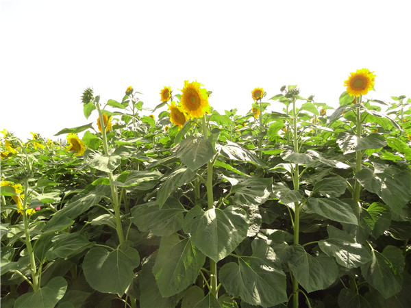5、適期收獲,當(dāng)花盤背部發(fā)黃、苞葉呈黃褐色,下部葉片干枯脫落,一般在開花后35~40天收獲。