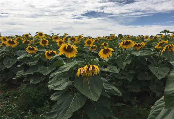 4、適期灌水,向日葵苗期耐旱,在土壤墑情好的條件下播種,一般出苗后30左右天不需灌水,以中耕鋤草保墑促根壯苗為主,苗期適當(dāng)抗旱,起到蹲苗、壯苗的作用,現(xiàn)蕾后要及時灌水,追肥,在成熟期灌水,要避開大風(fēng),以免倒伏。