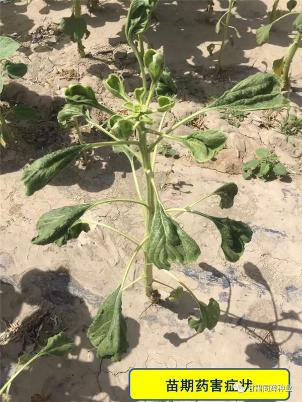 需要注意的是:向日葵藥害癥狀與重度鹽堿地的生理脅迫癥狀癥狀相似,與低溫風災凍害等原因造成的癥狀也有許多相似之處,在生產(chǎn)中需要注意綜合判斷區(qū)分。