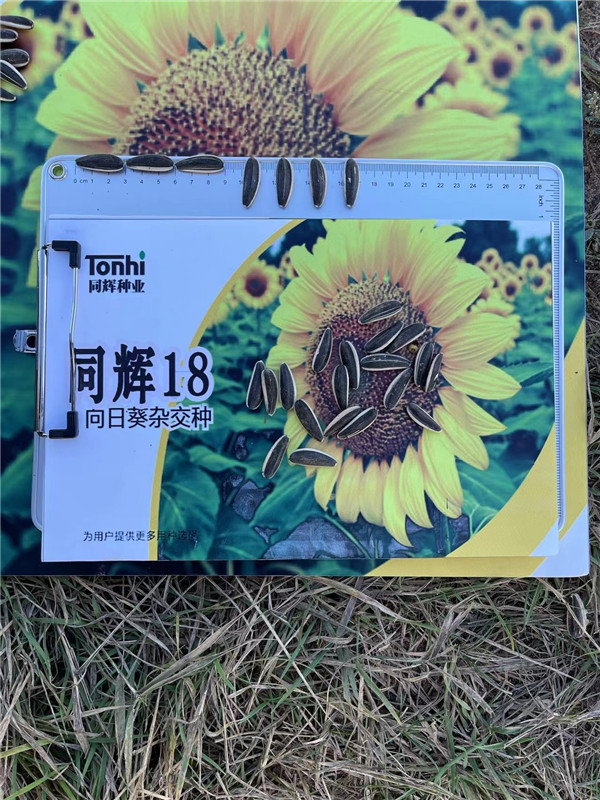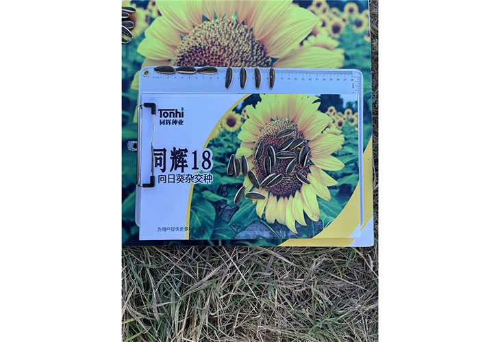 食葵,中早熟品種,平均生育期101天。株高160厘米左右,平均盤徑24厘米,花盤傾斜度4級,結(jié)實率62%,葉色中綠,花盤平整,籽粒灰底白邊,平均粒長2.45厘米,寬0.95厘米。